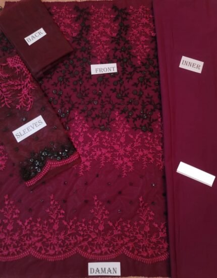 Elegant 2-piece unstitched suit with floral detailing